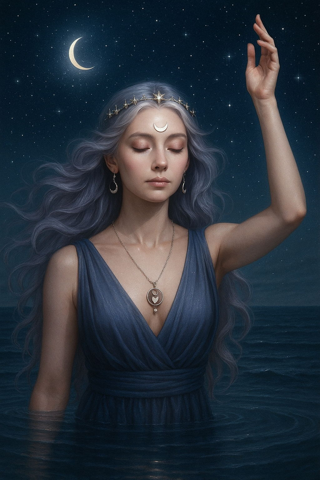 Sérénité lunaire. Intuition douce.Elle écoute le silence comme d’autres écoutent les cris.